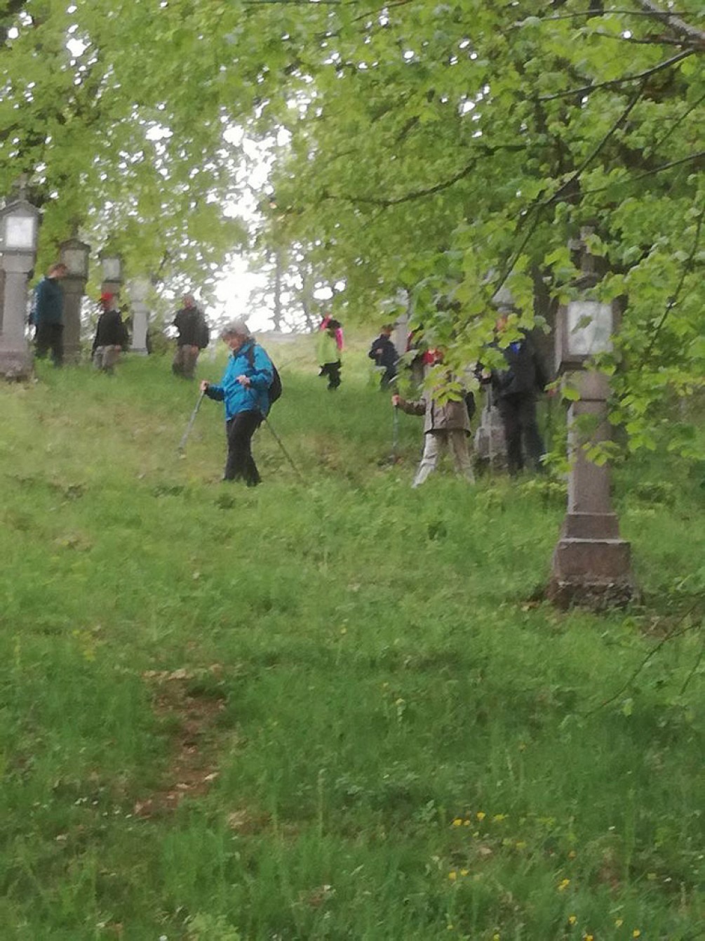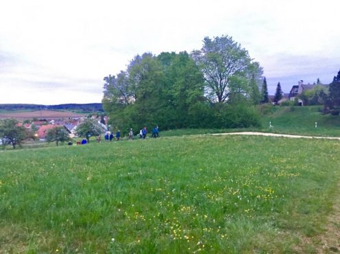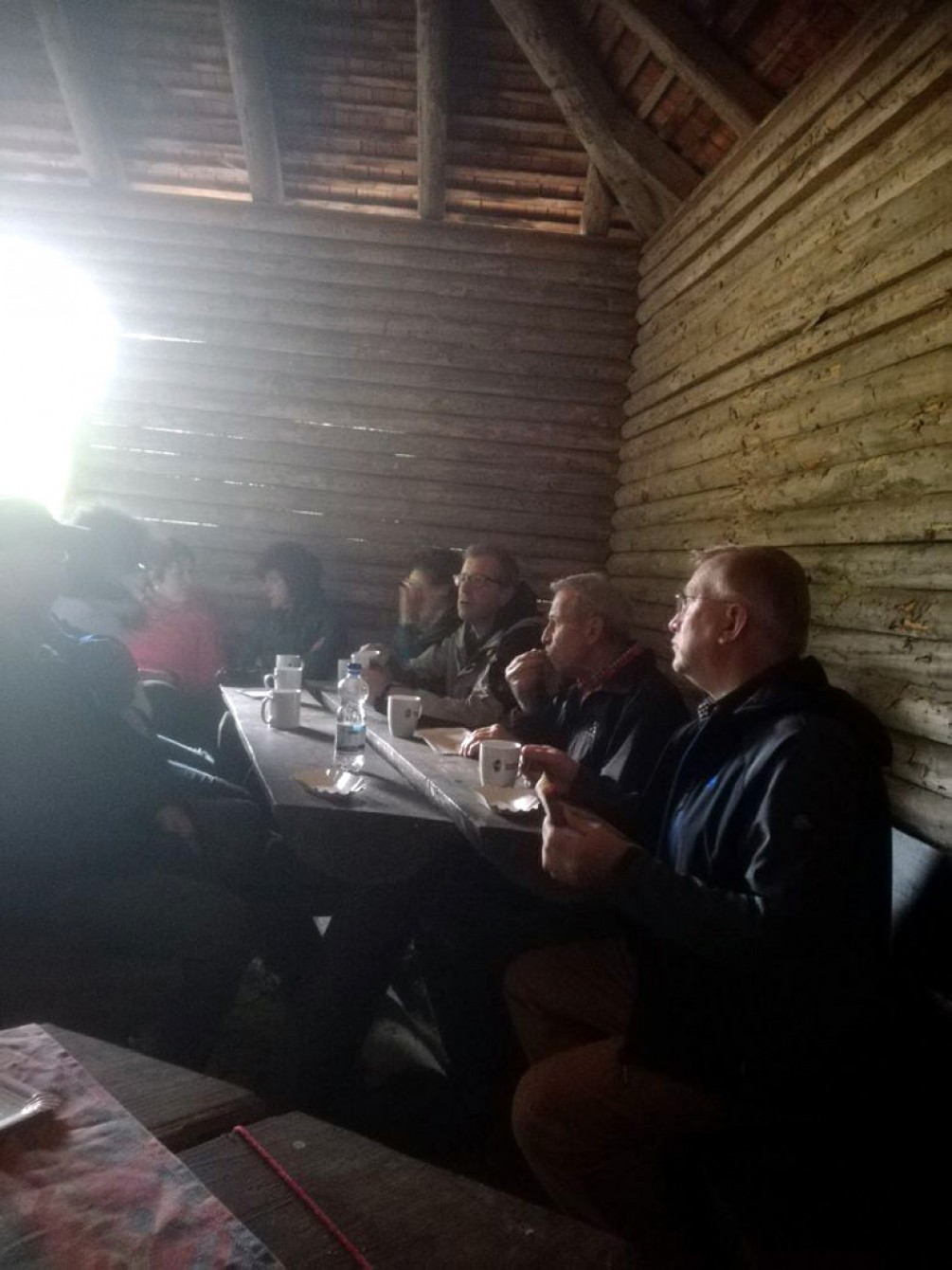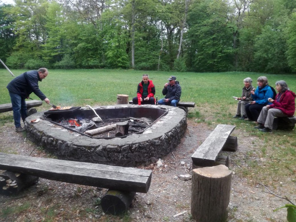 Für leckere, heiße Rote war kein Weg zu weit am frühen Morgen. Über Köhlerplatte und Kreuzberg erreichte man den Grillplatz auf Eichhalde. Peter und Matthias hatten das Frühstück vorbereitet, alle 23 mussten nur noch Platz nehmen. Wir erfuhren, dass für den Hefezopf wie immer Hildegards Holundergsälz da war. Danke, und weiter so! Bei der Rückkehr in Hayingen standen kurz nach 10 Uhr 13 km zu Buche.