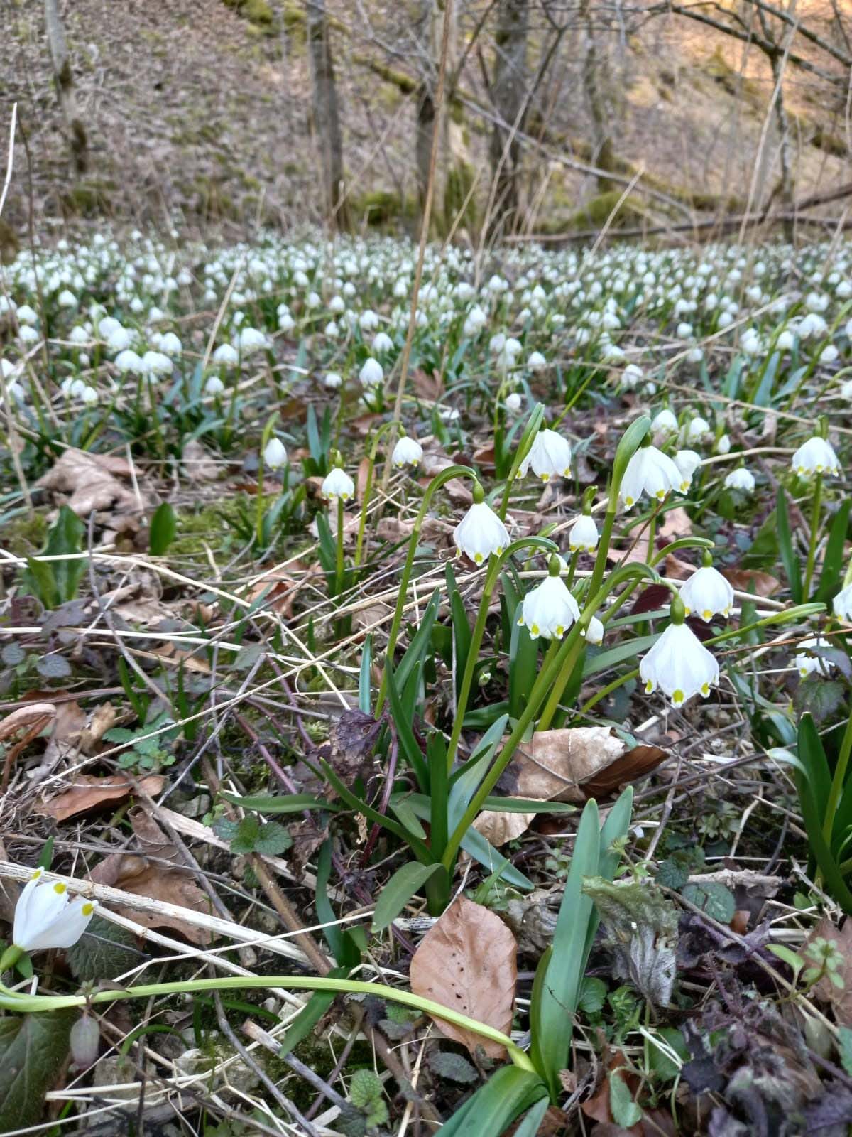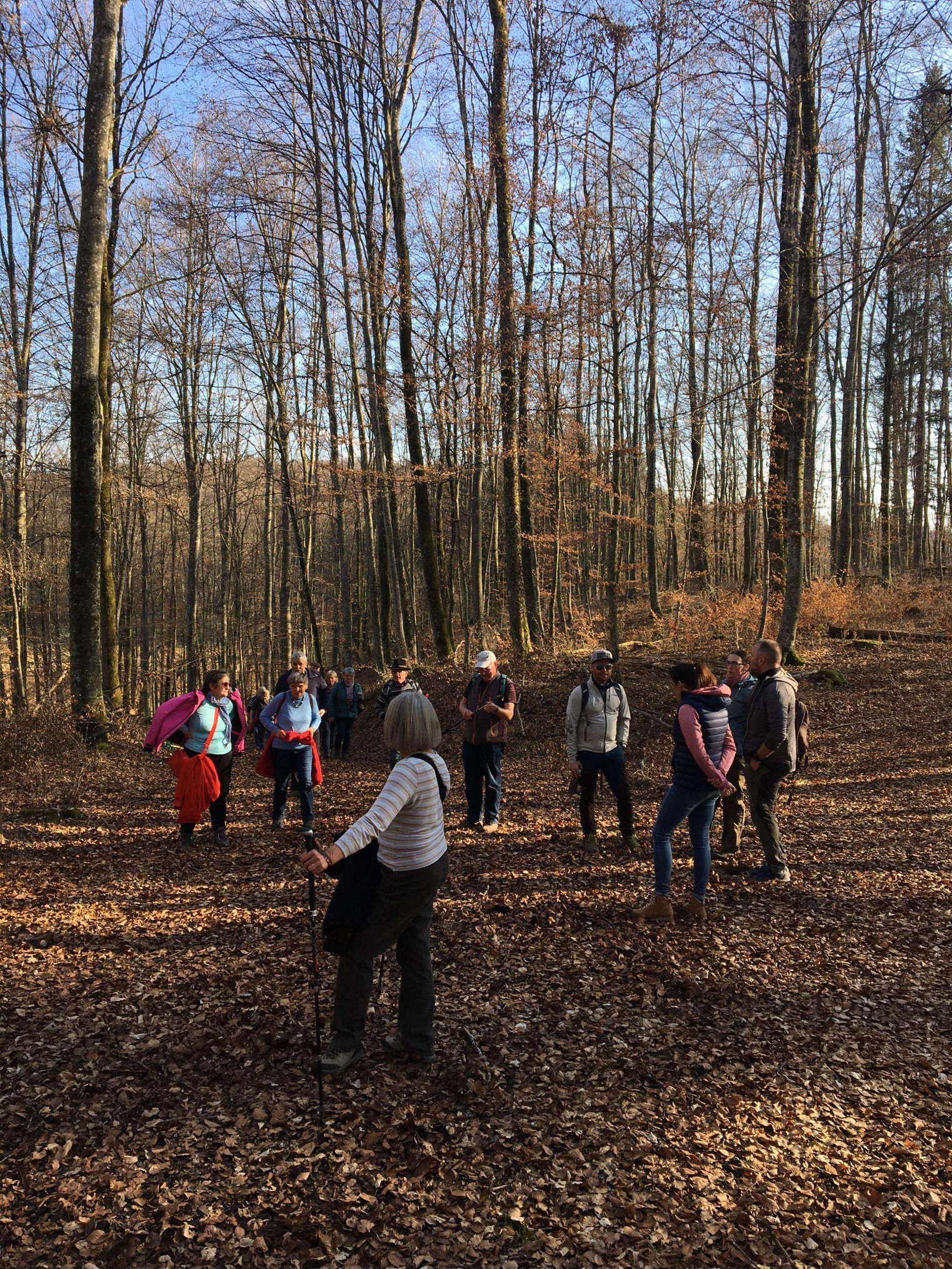 Jung und alt, sage und schreibe 31 Teilnehmer machten sich auf eine Märzenbecherwanderung ins Geisinger Tal, also zwischen Geisingen, Hochberg und Upflamör.