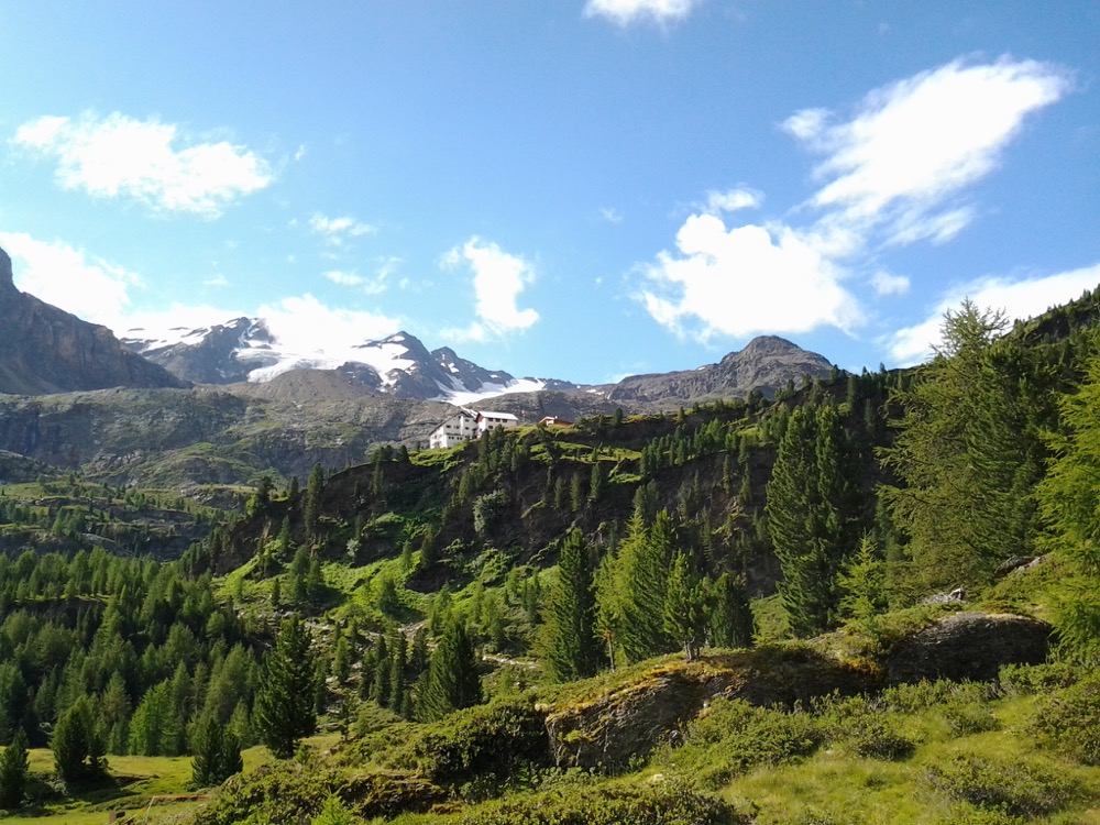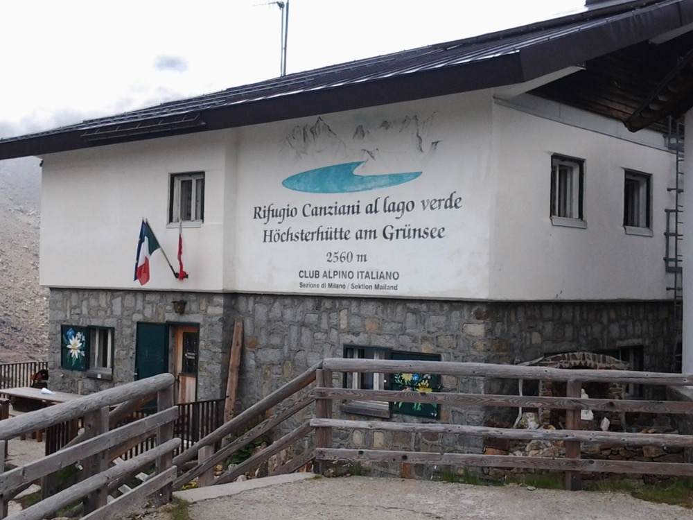 Marteller Hütte, Rifugio G. Larcher al Cevedale, Rifugio S. Dorigoni, Höchster Hütte am Ultner Grünsee (Rif. Canziani) und auch beim Zwischenstopp die Haselgruberhütte (Rif. Stella Alpina al Lago Corvo) waren alle gastfreundliche Hütten und noch nicht übervoll (im August dann?), manchmal geradezu leer (Rif. Larcher) – auch angenehm, dennoch Anmeldung empfohlen. Besonders leckeres Essen und nette Betreuung erfuhren wir auf der Dorigoni-Hütte mit Cecilia als Alleskönnerin in mindestens italienisch, deutsch und englisch (Vom trentinischen Val di Rabbi/Val di Sole für einen Urlaub…).