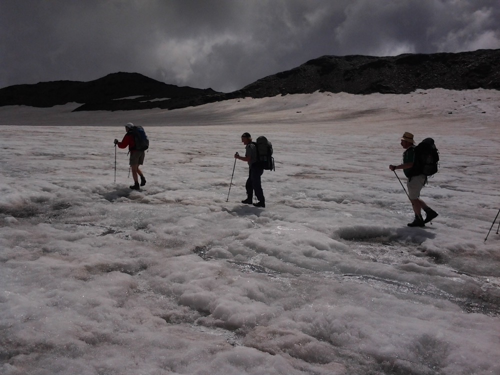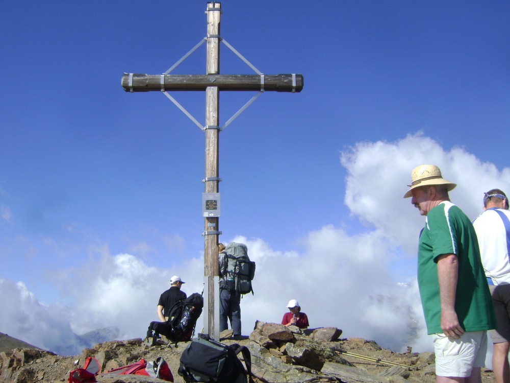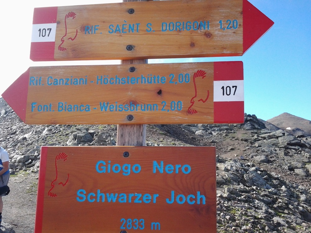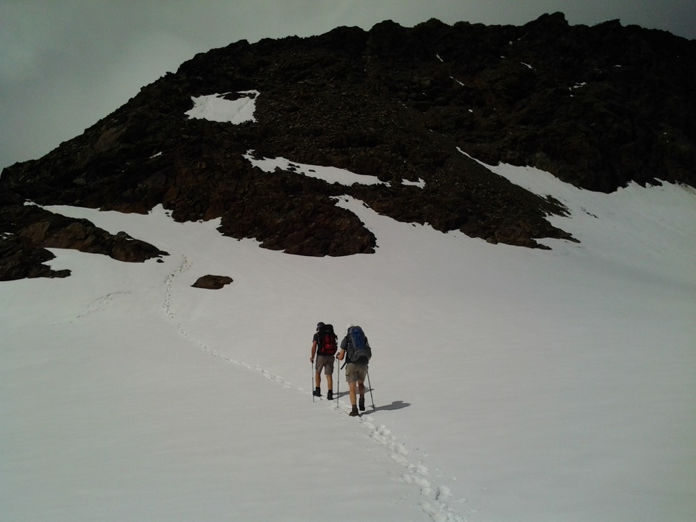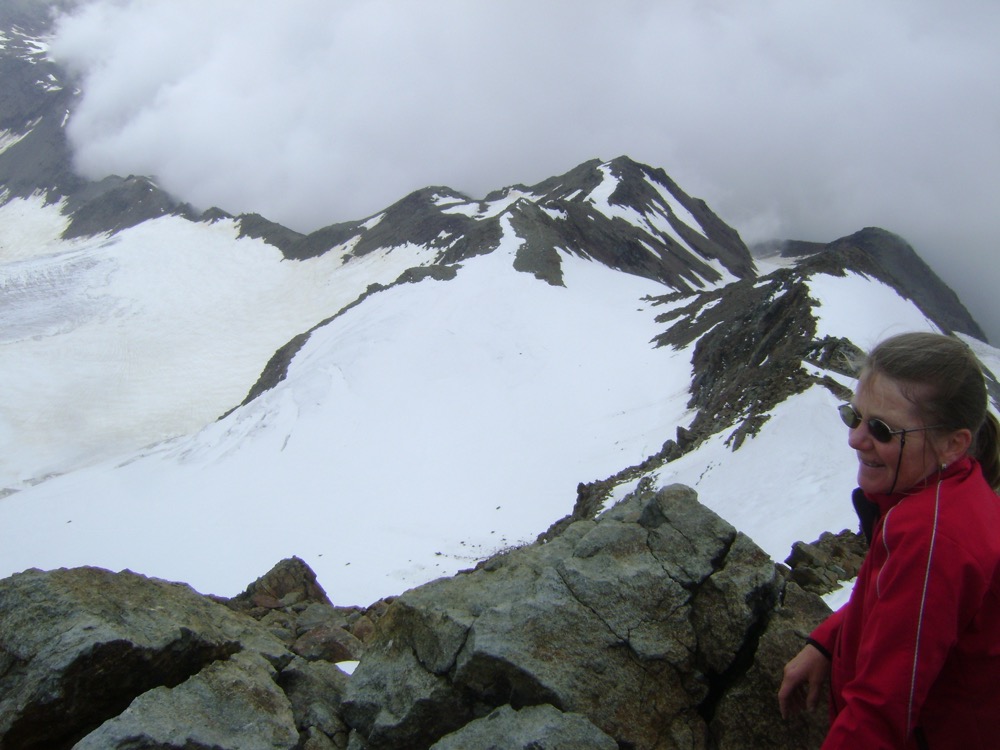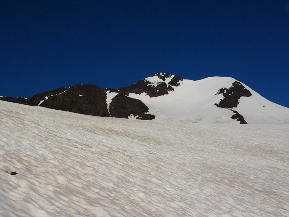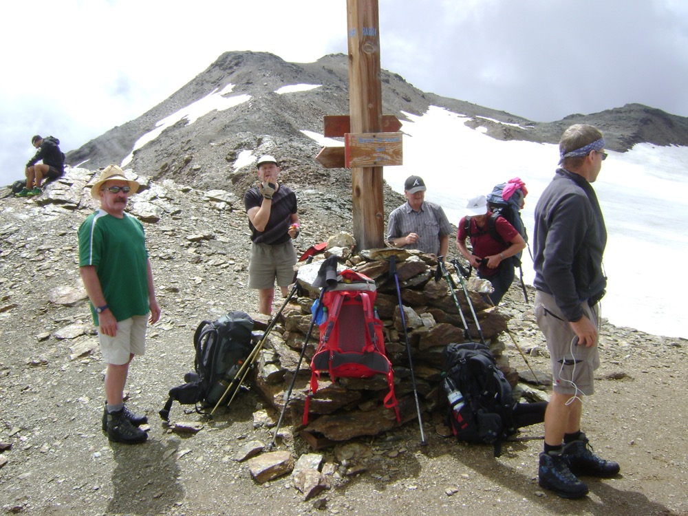 Zwischen den Südtiroler und Trentiner Alpenvereinshütten ging es 2016 etwas höher hinaus als sonst. Auf den langen Tagesetappen war zweifellos der Höhepunkt die Besteigung der Zufallspitze (3757 m) der Cevedalegruppe. Außerdem konnte man die Cima Mezzena (3172 m) über der Bocca di Sáent und im äußersten Südosten der Gruppe den Aussichtsberg Gleck (2957 m) besteigen. Schon durch die Höhenlage waren Schneefelder/Gletscher und Blockwerk über die Jöcher zwischen 2800 und 3000 m angesagt. Viele Seen, besonders um den Stausee Cáreser unter dem gleichnamigen Gletscher und um die Haselgruber-Hütte am Übergang von Val di Rabbi ins Ultental, säumten den Weg, einer schöner gelegen als der andere. Vor den Eisgipfeln der Cevedalegruppe vom Monte Vióz bis zum Monte Cevedale und zur Zufallspitze (Cima Cevedale) war dies ein besonderer Genuss. Einzig König Ortler hüllte sich immer in Wolken oder war hinter den anderen Granden versteckt; nur bei der Anfahrt vom Reschen die Malser Halde hinunter konnte man ihn wie gewohnt bewundern.