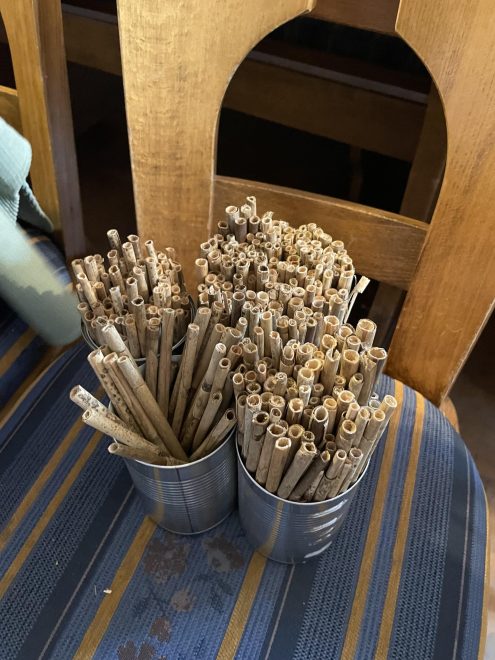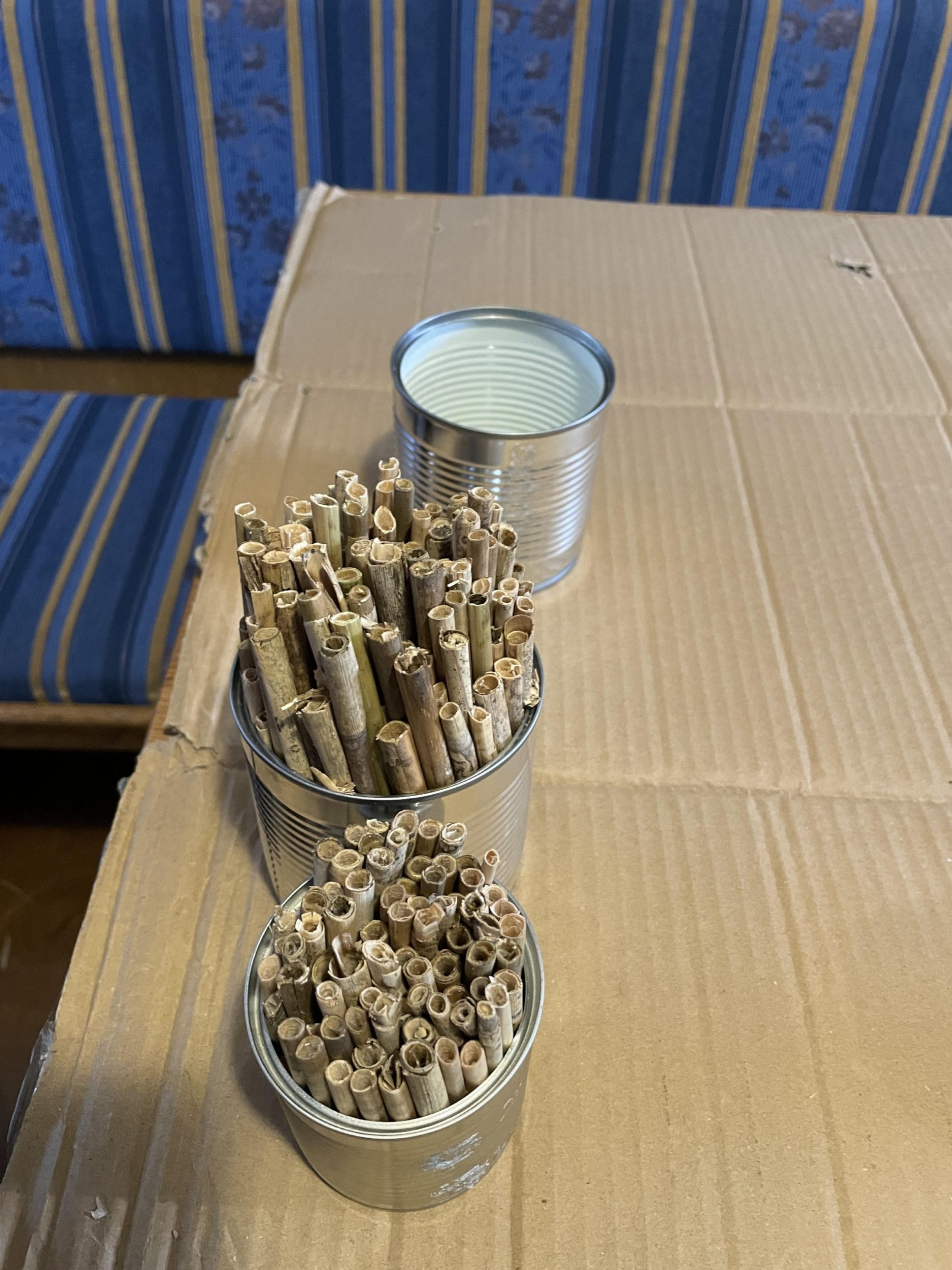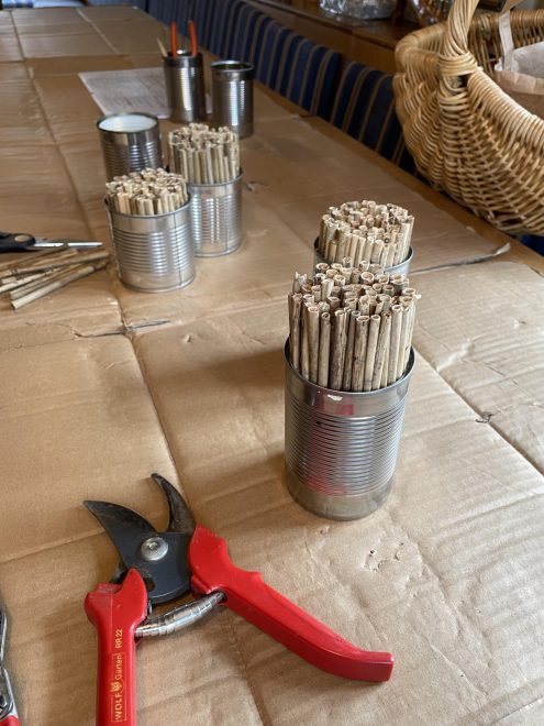 3 Familien waren dem Albvereinsangebot gefolgt, aus Schilfrohr Nisthilfen für Insekten zu basteln.