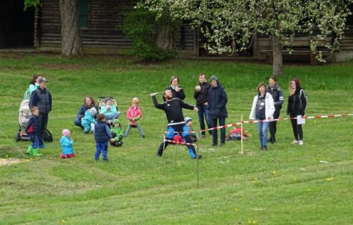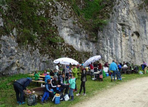 Unter dem Motto „Runter vom Sofa“ hatte der Albverein Hayingen zum 2. Mal zum Familien-Cup gerufen, wie im Vorjahr einer Runde um Burg Derneck mit zahlreichen Mitmachstationen und anderen Aufgaben und Rätseln. 2019 fand dies als Angebot für den Donau-Bussen-Gau und benachbarte Ortsgruppen statt. Dazu war es lange zuvor neben dem Hayinger Veranstaltungskalender auch in der sogen. „Naturerlebniswoche“ sowie über die Webseite der Burg Derneck beworben worden. Am Ende hatten über 65 Teilnehmer, davon 30 Kinder, ihren Spaß bei den spielerischen Anforderungen an Grips und Beobachtungsgabe, aber auch an Muskeln und Ausdauer.