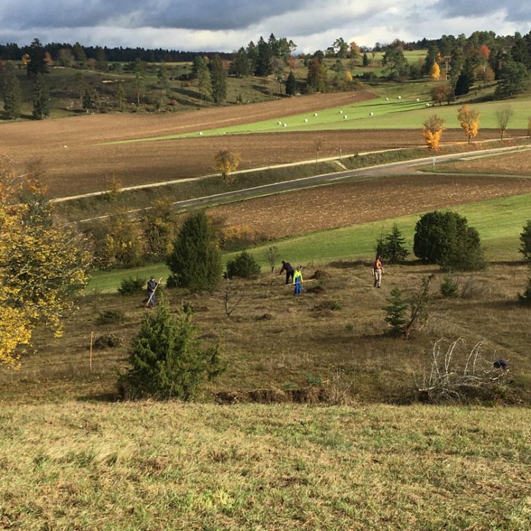 An zwei Samstagen legten sich Hayinger Albvereinler in den albtypischen Landschaften ins Zeug. Bei den Pflegemaßnahmen ging es hauptsächlich um das Zurückdrängen von Gehölzsukzession und die Stockausschlagspflege.