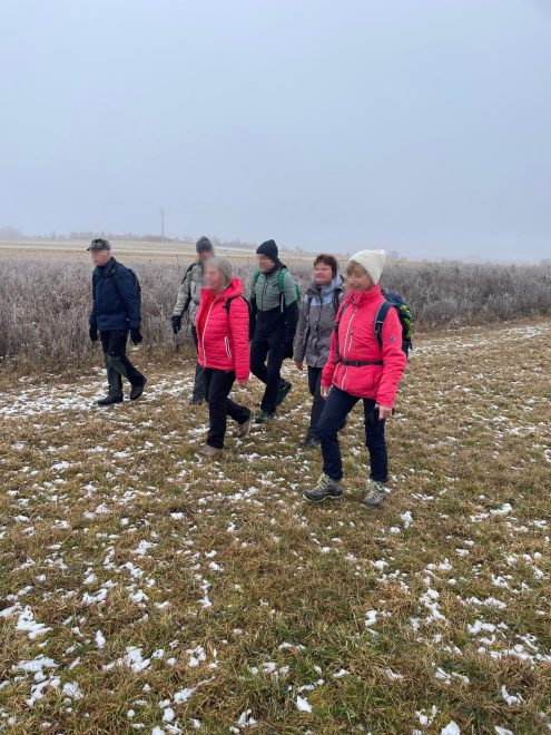 Im Uhrzeigersinn ging es nach dem Pfronstetter Sportplatz über den PhänoPfad auf die Höhen nördlich und nordwestlich von Aichstetten und über die letzten Wiesen wieder zu den Autos der 7 wandernden: 15,5 km bei 3:22 h in Bewegung und ±160 Höhenmeter.