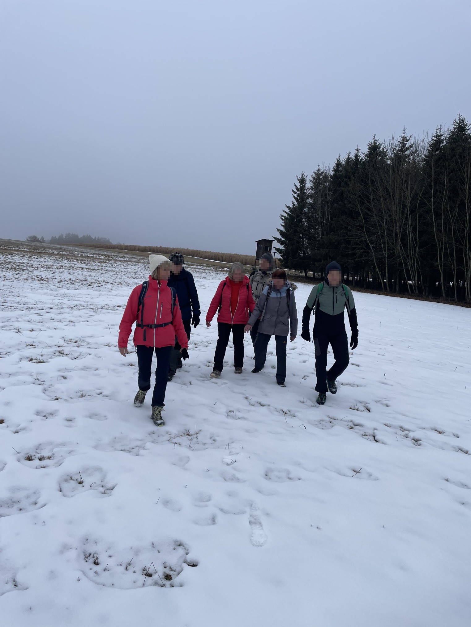 Knapp unter 0°C ging es los, die Wiesen und nur abgemähten Äcker waren hart genug für unsere Querungen. Einzig die tief umgepflügten Äcker verhinderten, stets kerzengerade von einem Waldeck um Pfronstetten zum anderen zu kommen.