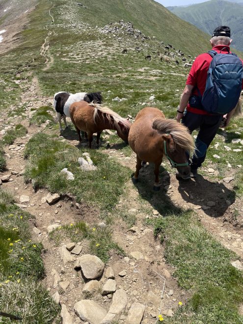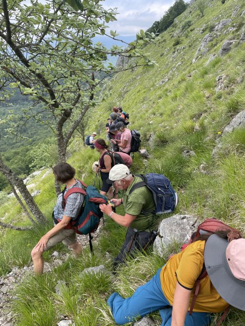 PASSO DI PRADARENA. Der Apenninwind machte Ernst, so dass eine Gruppe den Monte Cavalbianco in der anderen Richtung und zurück erstieg. Die weite Runde über den Monte Sillano und andere Gipfel mit tatsächlich 27 Teilnehmenden hatte es aufgrund der Gruppengröße in sich. Alle wieder am Pass: Haken dran.