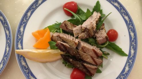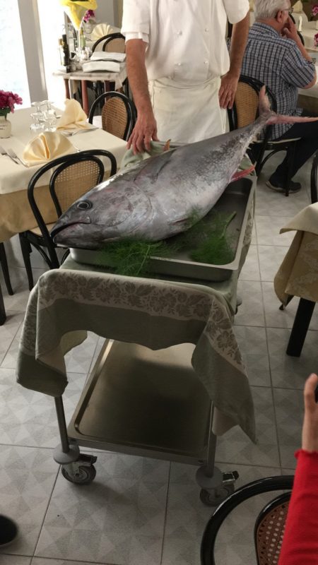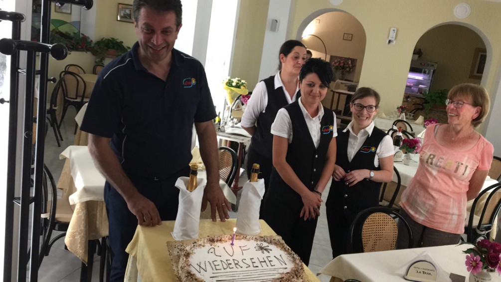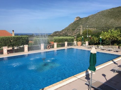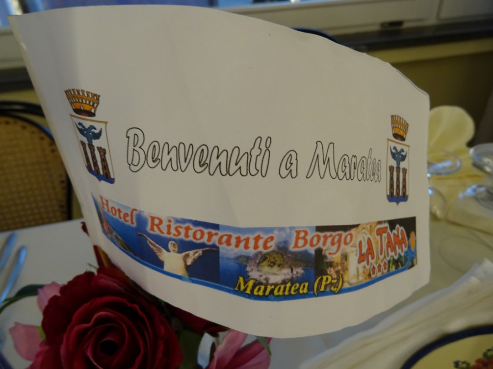 Für Wanderreise-Erfahrene: Unser Hotel im Ortsteil von Maratea praktizierte eine für uns neue Variante der Menüwahl und Tischanordnung. Beim Frühstück wurde die Menüwahl pro Zimmer abgeschrieben (nicht Mittagessen und Abendessen verwechseln!) und in eine Box eingeworfen. Dennoch kam es abends am „Einzelzimmertisch“ immer wieder zu lustigen Turbulenzen, weil die Bedienungen stets mit den Gerichten in der Hand die Zimmernummern italienisch verkündeten, z.B. cent-otto (108) und sich der Genannte sofort meldete, der oder die von Zimmer 108 aber zunächst leer ausging, u.ä.