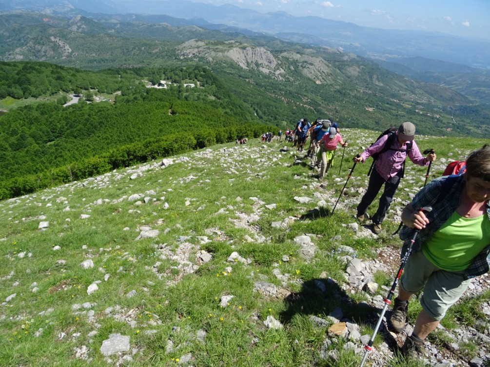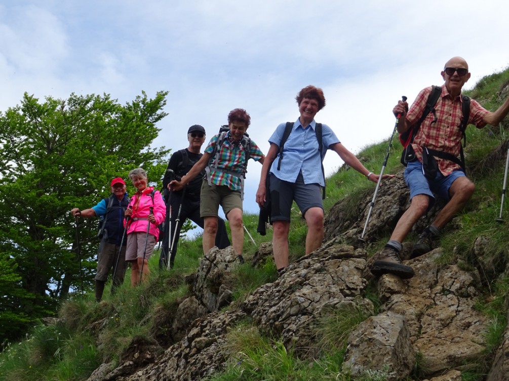 Den laut Rother-Wanderführer schönsten Berg Süditaliens, den Monte Alpi (1.900 m),ging die Gruppe getrennt von zwei Seiten an:Über den Vorgipfel Santa Croce (1.893 m) und ab einer Höhe von 1.000 m unter seiner enormen Westwand hindurch auf verwinkelten Pfaden direkt zum traumhaften Gipfelgrat.Die Blumenpracht des Bergfrühlings, viele Orchideenarten und Schmetterlinge sorgten für Begeisterung. Bei mehreren Wanderungen sprachen Farben, Formen, Düfte unsere Sinne an.