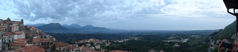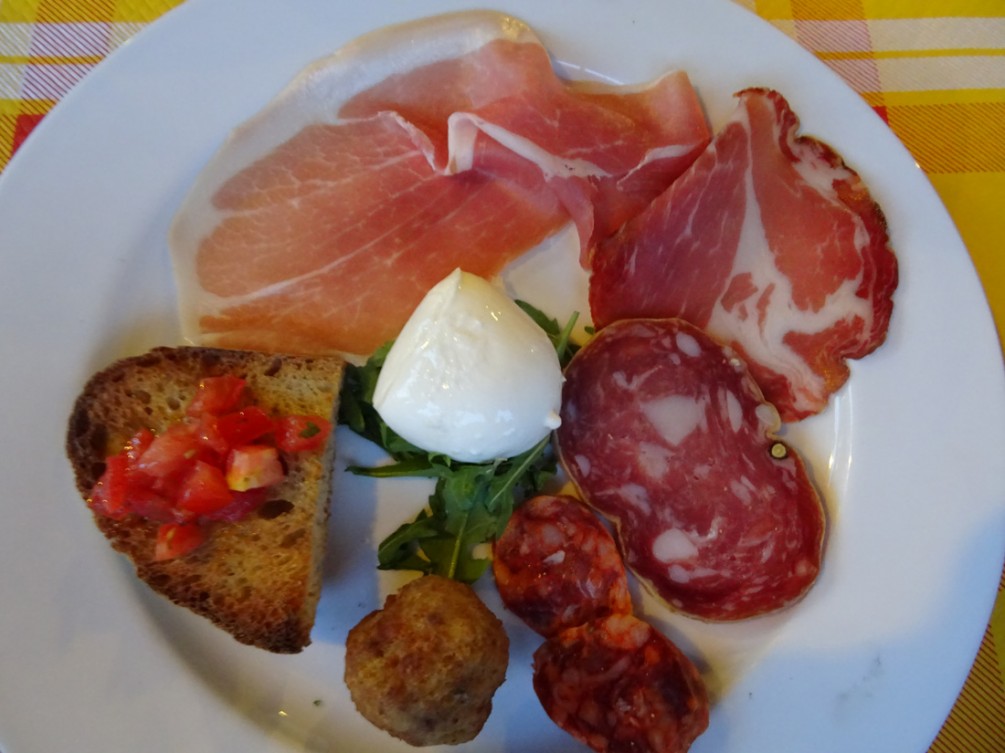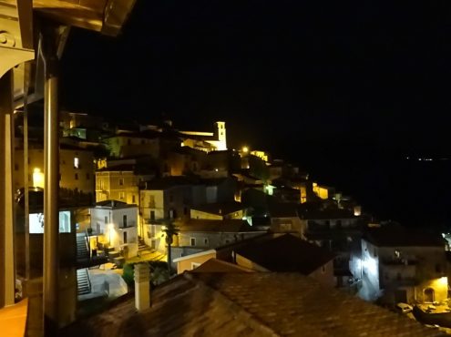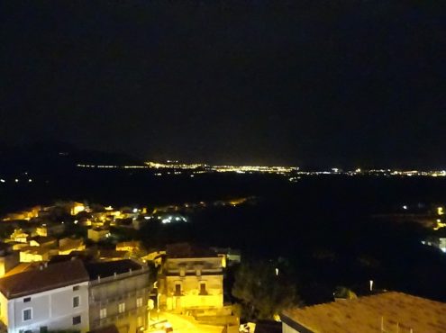 Zum landestypischen Abendessen wagten sich die Albvereinler wenige Kilometer über die Regionsgrenze nach Kalabrien hinauf ins verwinkelte Santa Domenica Talao. Das ausgesuchte Pizzeria-Ristorantemit traumhafter Dachterrasse tischte Köstlichkeiten auf – beginnend mit den Antipasti. An der Küste sahen wir dabei ein Feuerwerk zur Untermalung.Besser geht’s nicht. Die gastfreundliche Wirtin Michelle schwätzte unerwartet in fränkisch-schwäbischem Dialekt, hatte die Familie doch jahrelang eine Gaststätte in Öhringen geführt! Auch sie wollte wissen, wie wir denn auf den Ort und auf ihr Ristorante gekommen seien. Also das ist eine längere Geschichte. Wir wollten hier ursprünglich eine Wanderung machen….