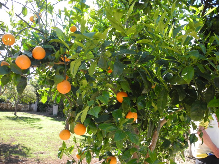 In wunderbarer Umgebung waren unsere Zimmer in der Tenuta di Roccadia, einem großen Agriturismo-Anwesen. Orangen und Zitronen, Kräuter, blühende Bäume und Blumen vor den Türen. Zum Frühstück hatten die „von ganz oben“ und die „Mittleren“ schon einen Spaziergang hinter sich. Am vielfältigen Buffet mussten sie allerdings um eine Tasse kämpfen. Gut, man konnte sich anderweitig beschäftigen, bis wieder eine Tasse frei war. 51 Personen gleichzeitig beim Frühstück waren für die emsigen Angestellten doch etwas viel. Wir hatten die Gelegenheit, Tässchen im Supermarkt günstigst einzukaufen, mal 6 Stück. Haben wir einfach so übergeben; die Tassen wurden natürlich mit dem Hinweis zurückgegeben, sie hätten nach dem Winter gedacht, noch mehr zu haben, jetzt aber schon wieder welche gekauft. „Ma loht nix verrecka“, die Tassen samt Untertassen kommen mit nach Hause. Die im Koffer haben zu 5/6 überlebt, die Untertassen im Handgepäcksrucksack nicht. Brösel, brösel. So Untertassen vergisst man schon mal, wenn man den Rucksack auf einer Bank unsanft abstellt. Die gefährlichen Scherben wurden beim Durchleuchten auch nicht entdeckt.