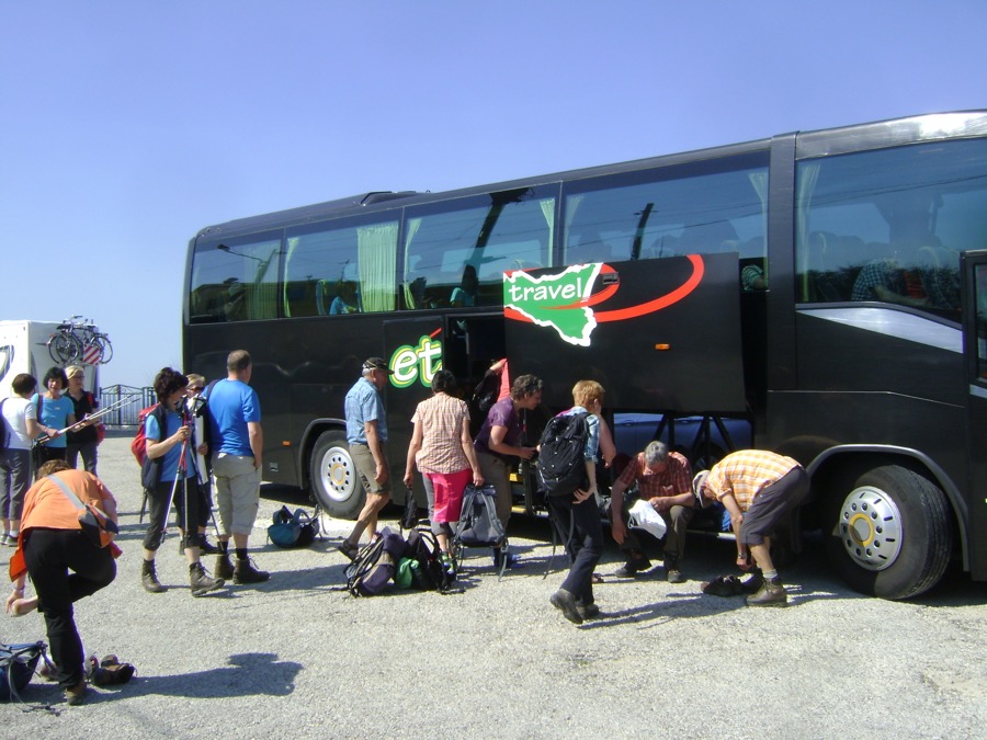 Unser Thomas hieß diesmal Giuseppe, genannt Pippo, und erwies sich – wie erhofft – als der erfahrene und umgängliche Seniorchef eines traditionsreichen Familien-Busunternehmens. Nicht ohne Stolz nutzte er unser Busplakat für „Benvenuti“ bei den Flughafen-Ankünften.