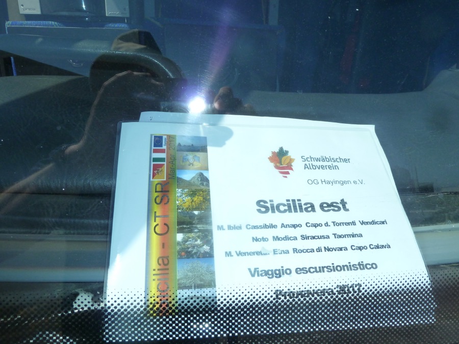 Anfang März war richtig der Wurm drin, weil AirBerlin – damit auch Alitalia – einfach die von fast allen gebuchte Verbindung gestrichen hatte. Uns war schon klar, dass nach der Fährüberfahrt Sardinien 2012 ein Flug nach Sizilien nochmal was anderes sein würde. Und ohne Knorr-Bus und Thomas; aber Fähre nehmen oder Bus den Stiefel hinab fahren hätten allein 4 Tage Reise bedeutet. Würden wir an einen sonnenbebrillten Fahrer geraten, dem keiner unsere beim Angebot artikulierten Fahrwünsche zu unseren Touren mitgeteilt hatte und der nur die berühmten Städte anzusteuern wüsste und das war‘s?