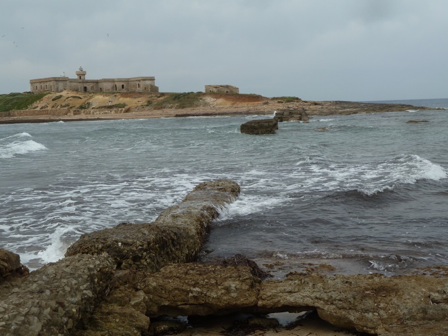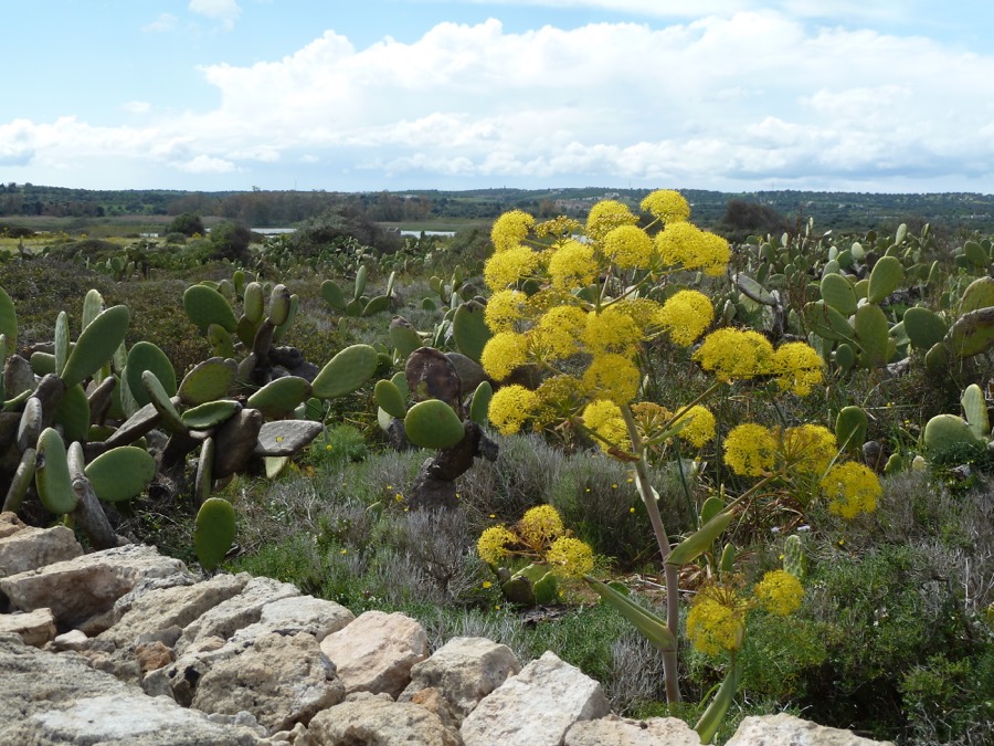 Morgens bei ständig wechselnden Wolken und kleinerem Regen an der Südspitze, durch Pachino (s.o.) und Ankunft am Küsten-NSG Vendícari: Die Sonne kam raus für unser Degustazione-Picknick und die Wanderung. Wir hatten so eine klare Luft und die Sonne von Südwest im Rücken, dass das Licht und die Farben zwischen Süßwasserseen, Macchia und Meeresbrandung nicht zu übertreffen waren. An der Zeit fehlte es ein wenig bei der großen Gruppe, aber alle haben sich mit der Hin- und Rückwanderung arrangiert. Danke!