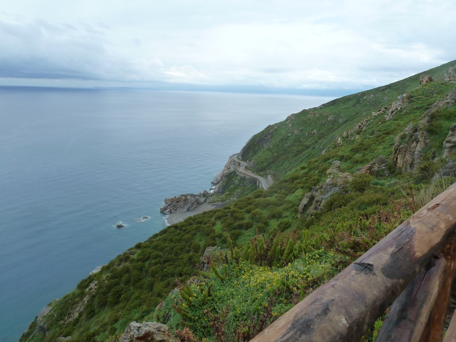 Wandertage getauscht, denn am Ätna geht’s heute gar nicht, an der Nordküste am Capo Calavà ist’s vielleicht nicht viel besser, aber 100-200 m über dem Meer zumindest nicht kalt. Gesagt, getan fuhren wir am Ziel in den Regen hinein, aber der Regenradar der Wetterwebseiten erlaubte das weite Sich-Hinauslehnen, dass sich der Regenwirbel in einer halben Stunde von uns wegbewegt haben würde (Danke auch, Manfred S.): „Um ¼ zwölfe hört’s auf mit regna“. Und so kam es. Rauf auf’s Capo Calavà zum Pausenplatz par excellence.