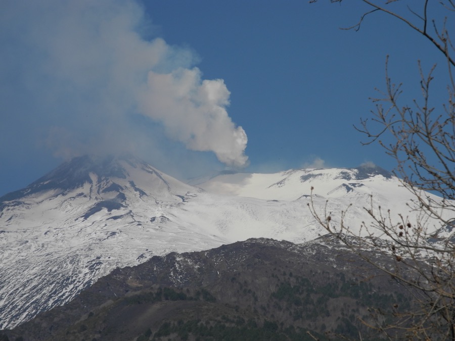 Von Osten konnte man die warmen Lavazungen am Südostgrat und im Valle del Bove sehen, denn nur die waren schneefrei und schwarz.
