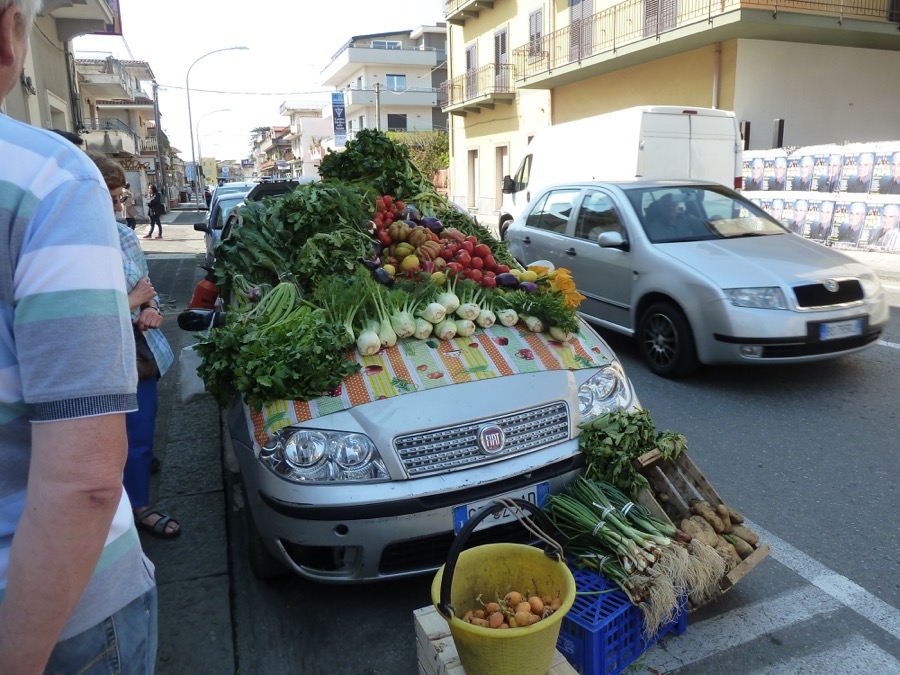 Nach dem erfrischenden Aufenthalt am Capo delle Torrenti, dem südlichsten Zipfel Siziliens, der ionisches und afrikanisches Meer „trennt“, wollten wir keineswegs durch Pachino durchfahren. Die „strada interrotta“ an der ionischen Küste wollte es anders. Enge Straßen im Schachbrettmuster über einen steilen Hügel gelegt, das meiste in Einbahn, keinerlei abgerundete Abzweigungen: Das ist Pachino. Immer tiefer gerieten wir hinein…