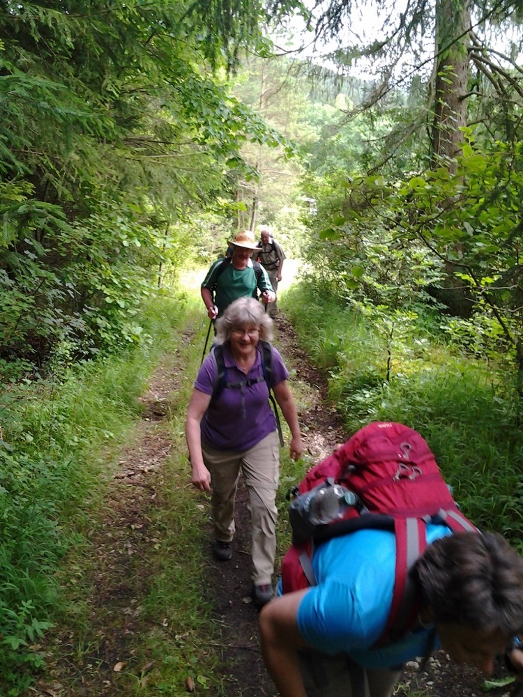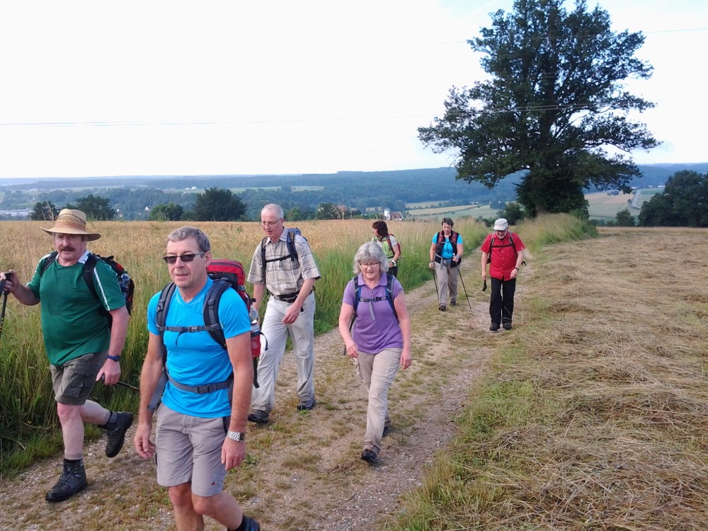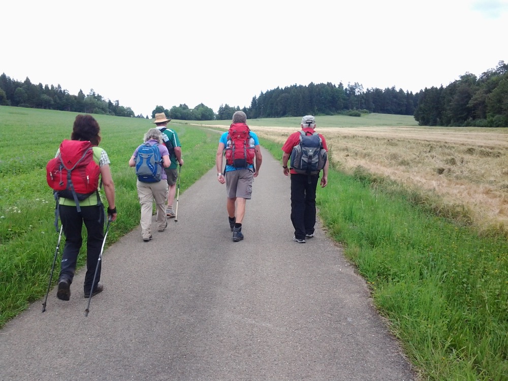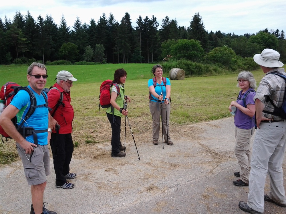 Verletzte unter den üblichen Verdächtigen für die Marathonawanderung wie bei der Fußball-EM: Es blieben 8 Unentwegte, 3 Frauen und 5 Männer, die die 43,7 km von den Zielfinger Seen bei Krauchenwies nach Hayingen in Angriff nahmen.