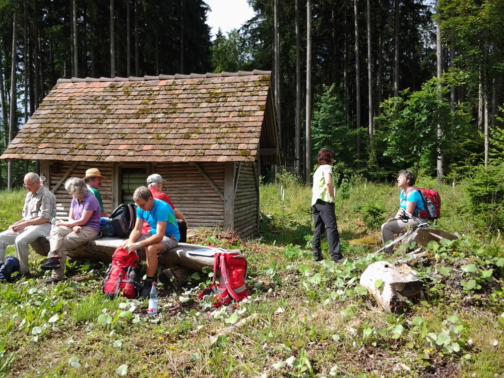 Es zeigte sich bald: Die leistungsmäßig kompakte Gruppe war wesentlich schneller unterwegs, als die Marschtabelle vorsah. Als man nach 13 km den Kreis Sigmaringen verließ, war gerade erst 9 Uhr durch. Nach einem idyllischen Vesperplatz in the middle of nowhere und der Durchquerung des Warmtals gab’s die Mittagspause zum 12-Uhr-Glockenschlag in Friedingen, leider ohne Einkehrmöglichkeit. So fasste man den Plan, Gauingen von oben her anzuwandern, damit man am „Grünen Baum“ vorbeikäme. 2½ Stunden und zig Höhenmeter später – Heuneburg, Geisinger Tal, Hochberg – durfte man dort etwas „runterkommen“ und nicht nur mit Kuchen verbrauchte Kalorien nachlegen. Gut dass es abwärts weiterging, denn nach 36 km war der Wiederstart nicht ganz einfach. Den giftigen Hundsrücken im Schlussanstieg meisterten die 8 aber mit Bravour und gingen erschöpft und zufrieden mit dem Geschafften nach 10:10 Stunden Gesamtzeit und 1072 Anstiegsmetern am Hayinger Marktplatz durch’s Ziel.