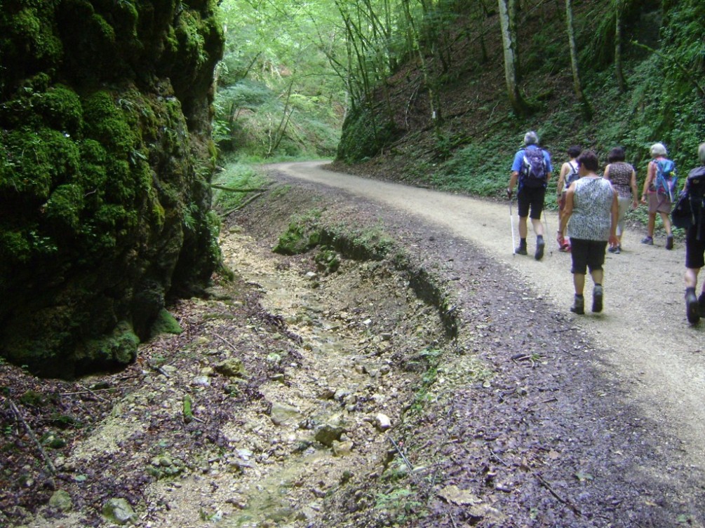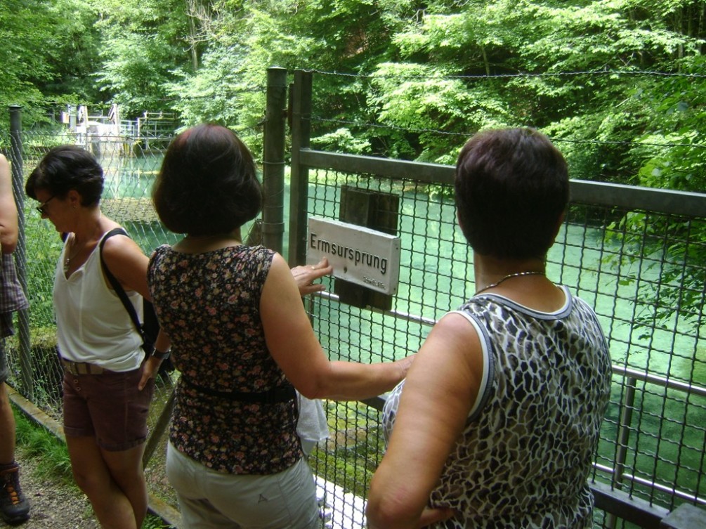 Der Schwüle trotzten 13 Wanderer, zum Glück hatte Wanderführer Heinz mit einer meist schattigen Wanderung vorgesorgt. Über das Ehrenmal über dem Ort, am Ermsursprung vorbei, durch die Trailfinger Schlucht ging es idyllisch, aber schweißtreibend auf über 750 m hinauf. Dem Donnergrollen dachte die Gruppe zunächst zu entkommen, fand beim Hofgut Uhenfels dann wenigstens vor dem langen Platzregen Zuflucht. Drei, die eh schon nass waren (oder doch nicht ?), erbarmten sich, die Autos aus dem nahen Seeburg zu holen, so dass wir doch noch zur späten Kaffeezeit im Lamm an der B465 waren. Mhhhm.