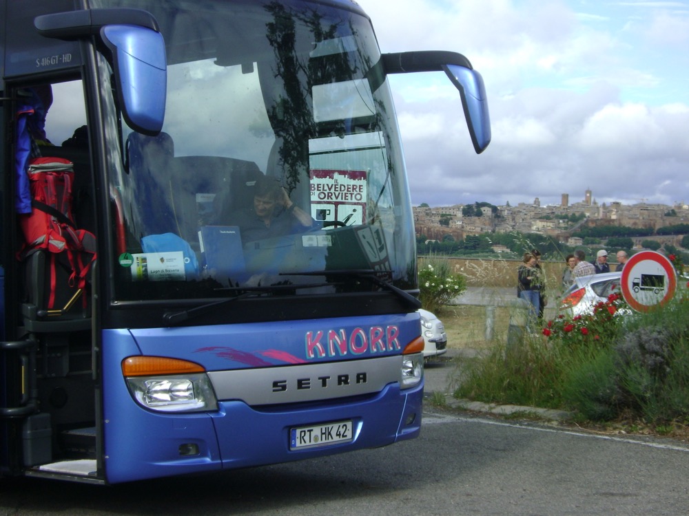 Leider oder zum Glück mussten wir kurz vor dem Ziel noch eine halbe Stunde Buspause einlegen. Das bescherte den 48 Teilnehmern einen Stopp am Belvedere di Orvieto mit Bar.