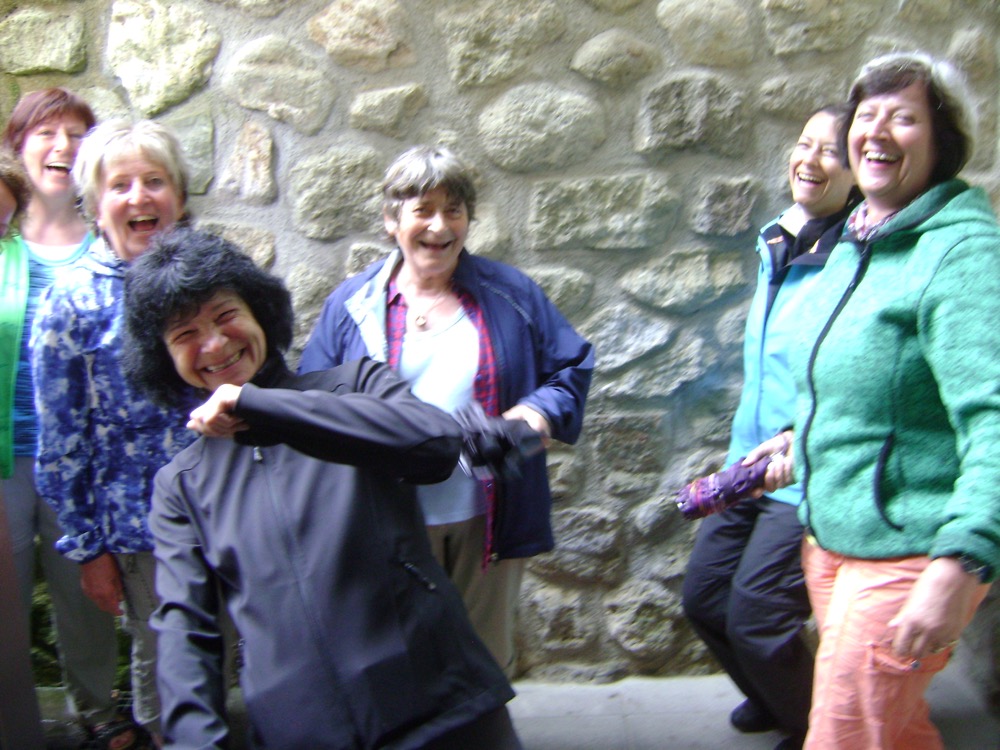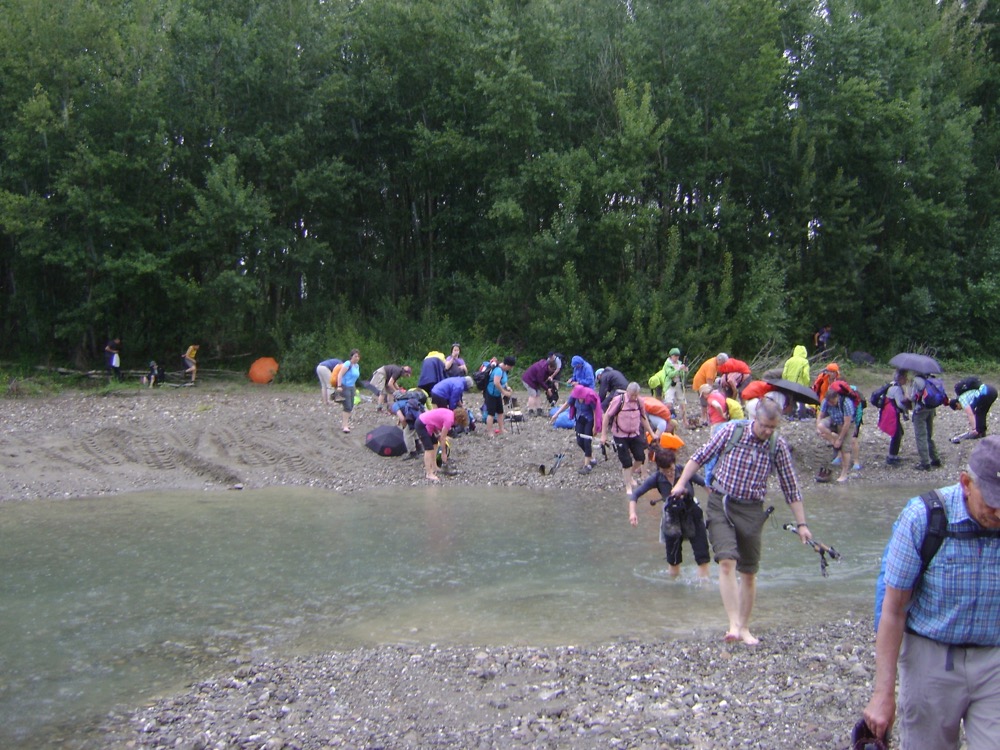 Die Furt am Fiume Paglia („Stroh“) war kein Problem – er hatte Niedrigwasser -, aber im Moment der angesagten Querung öffnete Petrus die Schleusen. Wasser von oben und unten und nur 2 Hände zum Wiederanziehen. Die Wanderertaufe haben alle mit Humor bestanden. J