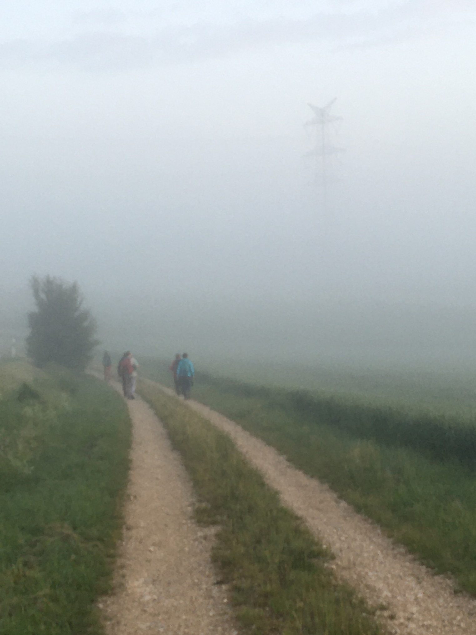 Dass auch sie „auf eigene Gefahr“ unterwegs war, merkte Wanderführerin Daniela beim zapfendusteren Abstiegsweg Maisenburg – Parkplatz Anhausen. Der Vollmond konnte sich zwar allmählich gegen die Wolken behaupten, aber im tiefen Tal und unterm Blätterdach war es „kuhnacht“. Dazu glitschig auf den Steinen… Verpflastert und verbunden ging es nur noch einige Kilometer weiter. Wie es jetzt aussieht: Schwein gehabt.