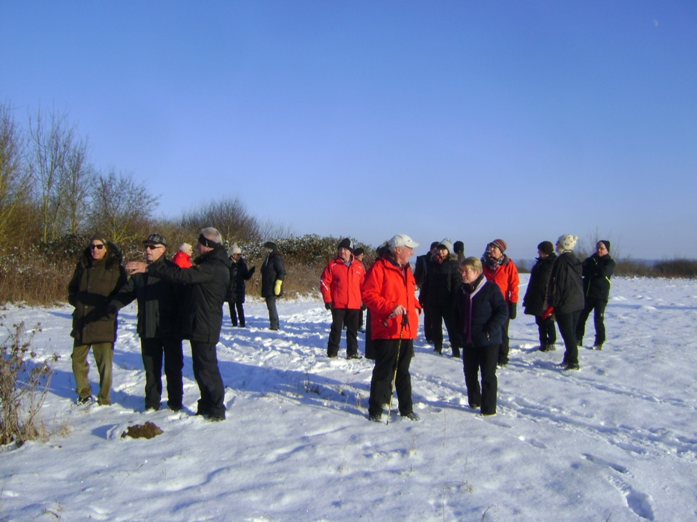 Einen sonnigen Start 2017 hatte der Albverein in der überzuckerten Donau-Aue mit 22 Wanderern unter Ingrid Fischers bewährter Führung.